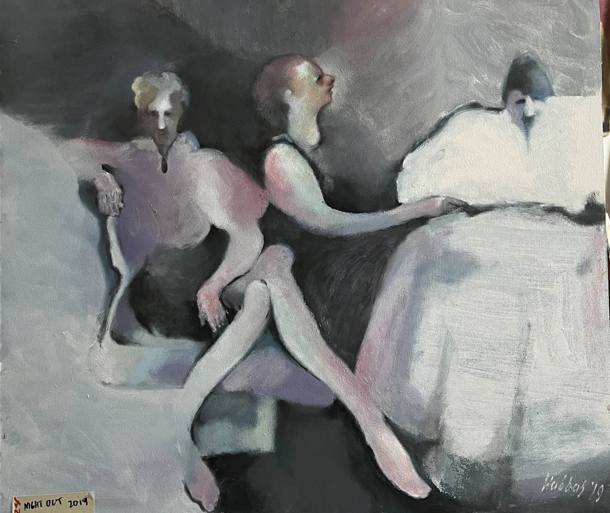 NIGHT OUT, Oil on Board, 24x27 - 2017
